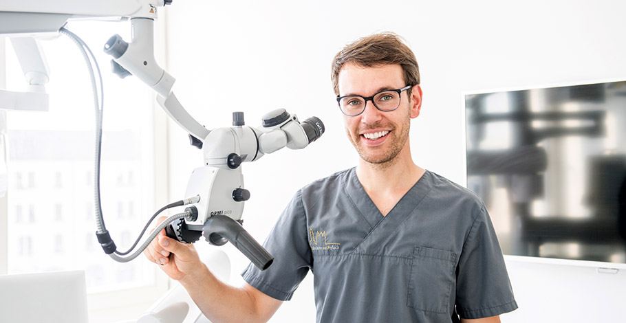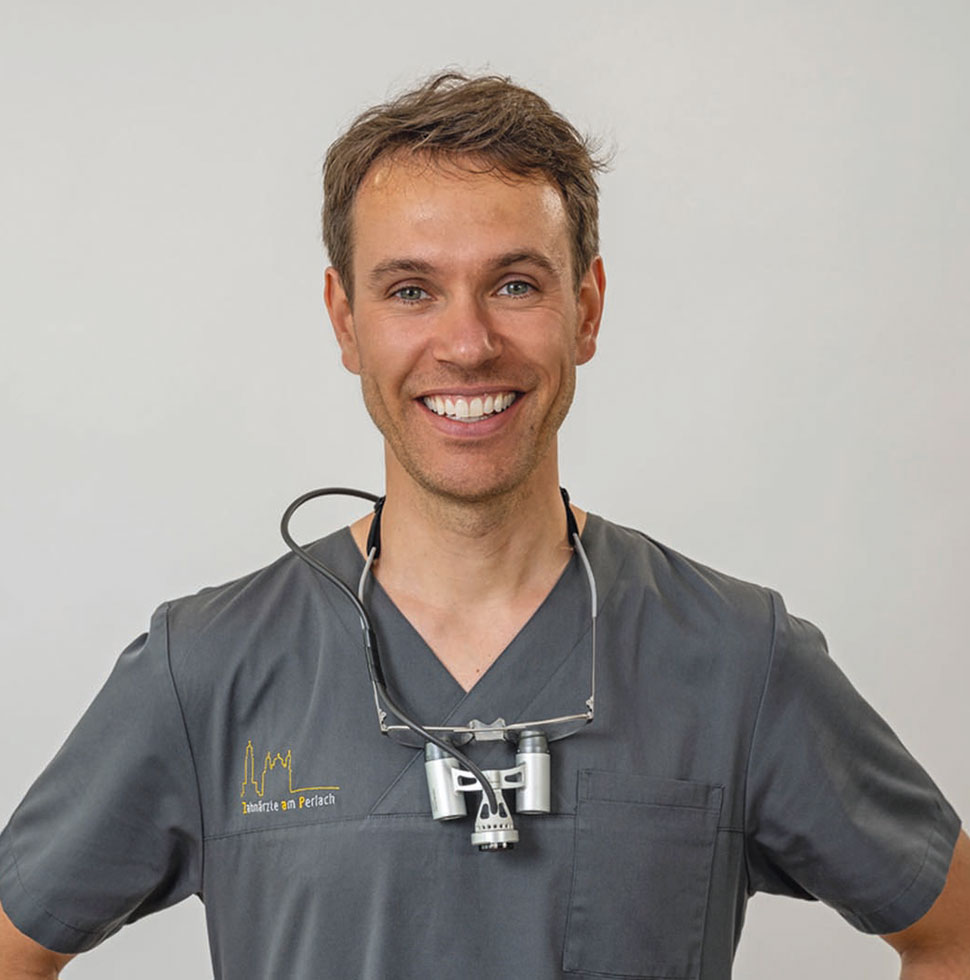 Wie man ein Potenzial erkennt, ausschöpft und ausbaut, ist Dr. Christian Leonhardt schon seit seiner Jugend bekannt. Bis er 20 war, betrieb er Straßenradrennen als Leistungssport. Mit dem Studium der Zahnmedizin an der Universität Würzburg wechselte seine Leidenschaft von der Straße zum Zahnarztstuhl. Im Jahr 2016 übernahm er die Zahnarztpraxis „Zahnärzte am Perlach“. Zusammen mit seinem erfahrenen Partner Dr. med. dent. Klaus Karg behandelt er mitten in Augsburg. Vom Wartezimmer streift der Blick über den historischen Rathausplatz.