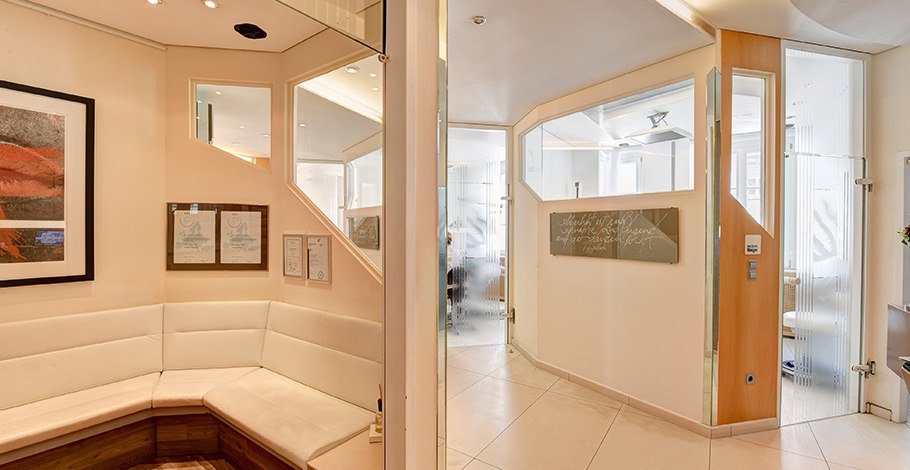 Aus den USA hat der Wahl-Münchner sein Verständnis von exzellenter Dienstleistung mitgebracht. Mit einem Lächeln wird jede:r Patient:in in der Praxis begrüßt. Weiße Jeans und dunkelblaue Polohemden – der einheitliche Look der Helferinnen unterstreicht: Wir gehören zusammen. Freundlichkeit und Spirit kommen nicht von ungefähr: Praxisinhaber Dr. Sörgel legt großen Wert auf Aus- und Weiterbildung aller Mitarbeiter. Die Helferinnen werden fachlich und in Hotellerie geschult. Frau Dr. Sondermeier und er sind von der European Dental Association (EDA) zertifiziert, für die sie eine Mindestzahl an gesetzten Implantaten und endodontologischen Behandlungen nachweisen müssen. Dr. Chlebowski hat das Curriculum „Ästhetische Zahnmedizin“ der Deutschen Gesellschaft für Ästhetische Zahnmedizin (DGÄZ) absolviert.