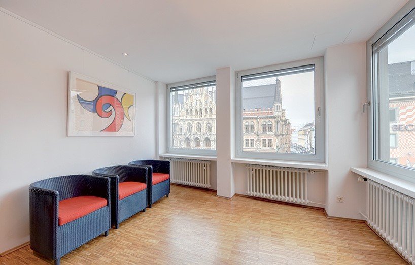 Scharf sehen können muss auch, wer aus dem 4. Stock der Augenklinik am Marienplatz, direkt vis-à-vis vom Münchner Rathaus, etwas auf dem Platz tief unter ihm erkennen will. Straßenmusikanten, Touristen und Einheimische sorgen für hektisches Treiben. Hier oben herrscht angenehme Ruhe. Optikerinnen, Ärzte und Schwestern sprechen gedämpft. Telefone klingeln kaum hörbar. Bereits 1998 gründete Dr. Tobias Neuhann seine Klinik. Auf insgesamt 600 Quadratmetern und über zwei Etagen verteilen sich drei Einrichtungen: das AugenDiagnostikCenter (ADC München), in das etwa 40 Augenärzte aus München und Umgebung ihre Patient:innen zu den diversen Untersuchungen schicken, sowie die Augenklinik und das Zentrum für refraktive Chirurgie, wo Neuhann und seine Mitarbeiter:innen rund 7000 Eingriffe jährlich durchführen.