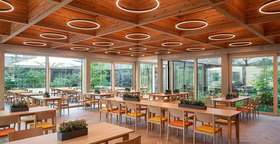 Patient:innen aus Thüringen, Deutschland und der ganzen Welt sollen sich hier wohlfühlen und in guten Händen wissen. Dazu gehört auch, dass das Krankenhaus als eine der ganz wenigen Kliniken in Europa für Patient:innen jüdischen Glaubens einen zertifizierten koscheren Aufenthalt sowie eine eigene Synagoge anbietet. Die herausragendsten Merkmale sind aber der kreisrunde Grundriss des Hauses und dass die Patientenzimmer über einen Wintergarten verfügen. Alle Patient:innen genießen so einen Blick in die Natur. „Wir konnten feststellen, dass diese ,Healing Architecture‘ positive Auswirkungen auf ihre Rekonvaleszenz und die Heilung hat“, berichtet Univ.-Prof. Dr. Georg Matziolis, ärztlicher Direktor der Waldkliniken Eisenberg. „Durch den Blick ins Grüne, umgeben von viel Holz und anderen natürlichen Materialien regeneriert sich das Immunsystem schneller. Die Patienten brauchen weniger Schmerzmittel und es kann sogar vorkommen, dass wir sie etwas früher als prognostiziert entlassen können“, so Matziolis weiter.