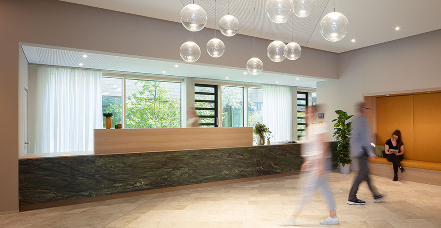 Patienten, die in die Waldklinik Eisenberg kommen, werden mit höchster Wahrscheinlichkeit das Gefühl haben, sie betreten statt eines Krankenhauses ein Fünf-Sterne-Hotel. Ein Grund dafür mag die zauberhafte Lage sein – inmitten des Thüringer Waldes, umgeben von purer Natur und einer spürbar erholsamen Stille. Ein weiterer Grund ist die einmalige Architektur dieses Hauses, für das Stararchitekt Matteo Thun verantwortlich zeichnet.