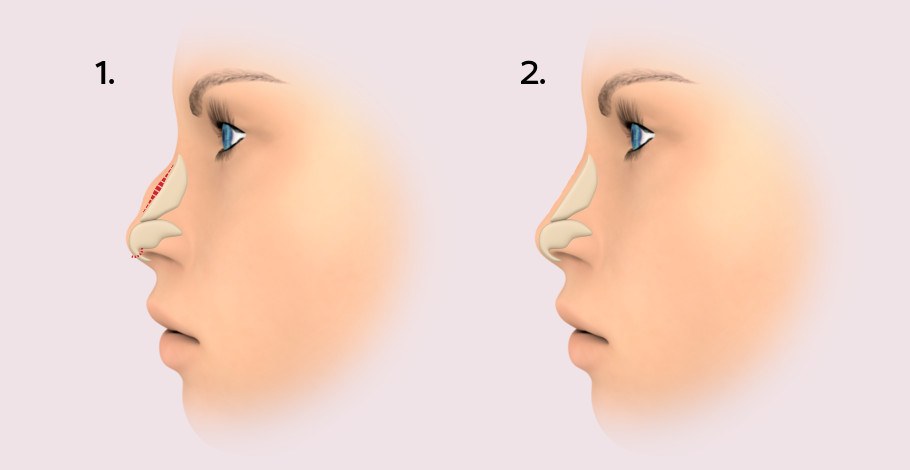 Durch eine Nasenkorrektur kann z.B. ein sichtbarer Nasenhöcker abgetragen, eine Nase verkürzt oder auch verlängert oder die Form der Nasenspitze und der Nasenlöcher verändert werden. Es können aber auch Belüftungsprobleme, z.B. bei einer Nasenscheidenwandverkrümmung, der Nase behoben werden.